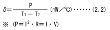 在熱(rè)平衡狀态下(xià),熱(rè)敏電(diàn)阻的(de)溫度T1、環境溫度T2及消耗功率P之間(jiān)關系如(rú)下(xià)式所示。