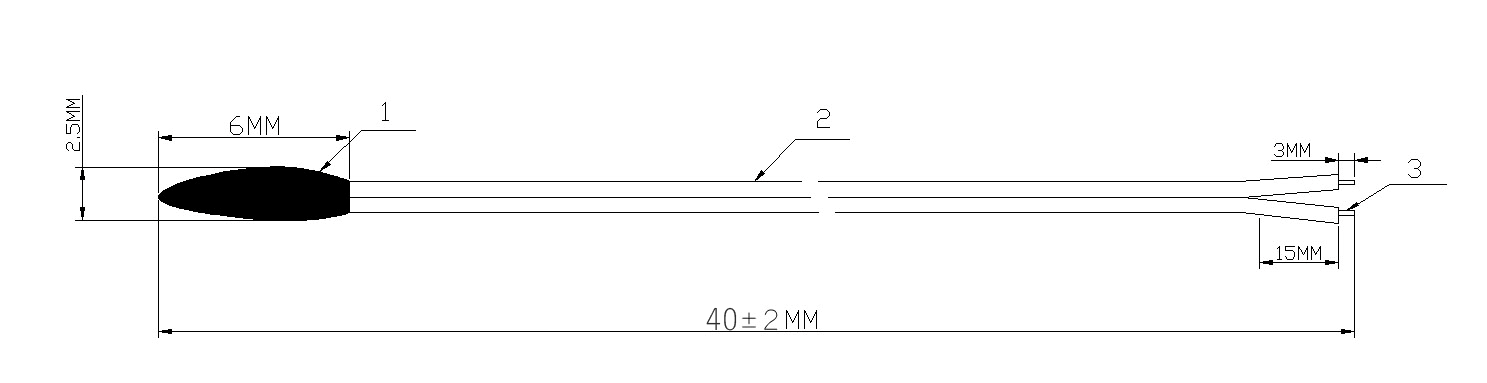 MF52D小(xiǎo)皮線NTC熱(rè)敏電(diàn)阻尺寸圖(mm)